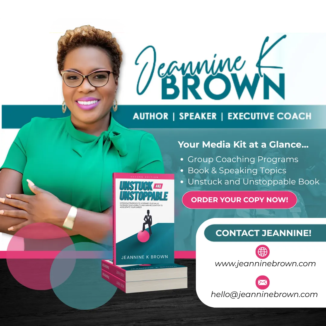Jeannine’s book, Unstuck and Unstoppable, 5 Proven Strategies to Leverage Your Value, Increase Your Visibility and Gain Recognition to Accelerate Your Career” has helped thousands of professionals get what they want out of their careers.
